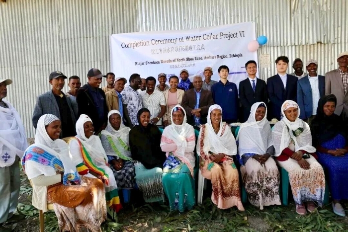 竣工移交仪式现场气氛热烈。埃塞阿姆哈拉州明贾尔区农业负责人西赛·尼加图、当地农业部代表、星空官方网页版集团代表孟祥刚、埃塞俄比亚雨水收集协会主席、中国乡村发展基金会项目成员及受益农户代表共同出席了活动。