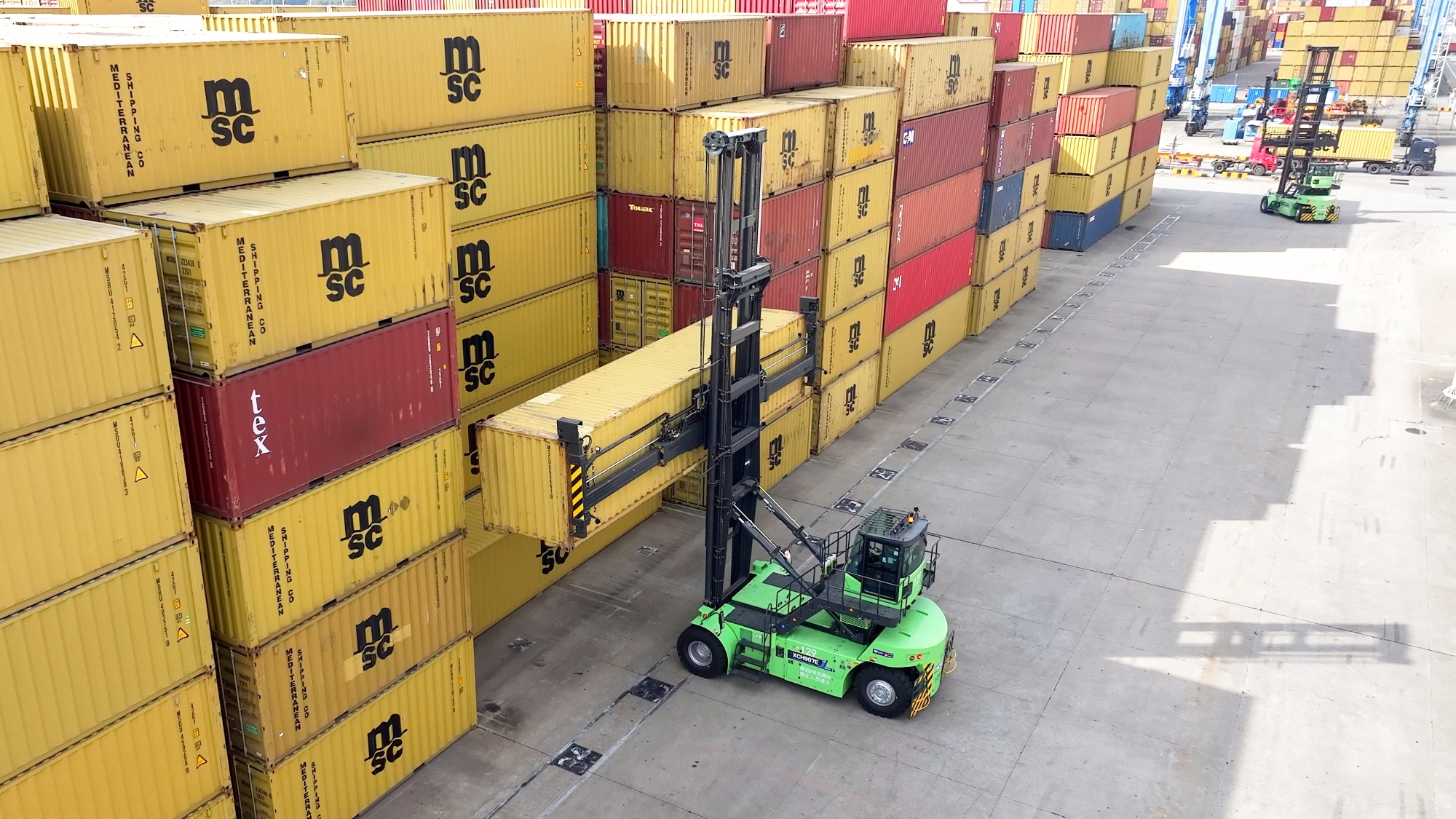 针对集装箱堆存、转运等核心场景,星空官方网页版打造了涵盖电动正面吊、堆高机在内的成套纯电装备矩阵。其中,领跑行业的电动堆高机,已成为高端绿色码头的标配。在浙江海港的多处关键作业前沿,这套方案正构建高效、协同的智慧作业新生态。