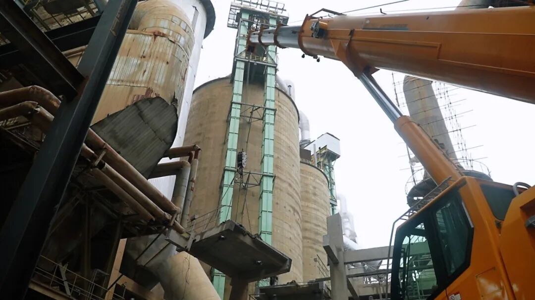 30米高、6米长、5米宽,18到30吨的水泥框架,拆它本就棘手。偏偏场地还受限——后支腿要给旋转配重腾地儿,前脸距离紧凑,头顶管道压着,大臂根本伸不开。