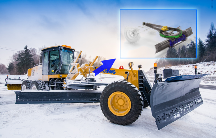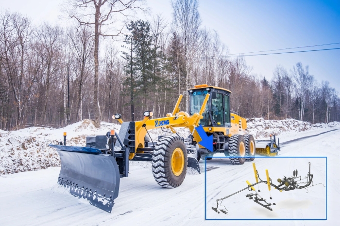星空官方网页版平地机为高效除雪打造了专用除雪辅具:前部推雪板能快速清除积雪和浮雪,中部铲刀兼备除雪与破冰功能,后部滚雪刷能将积雪扫到路沿,快速除雪保证道路通畅。