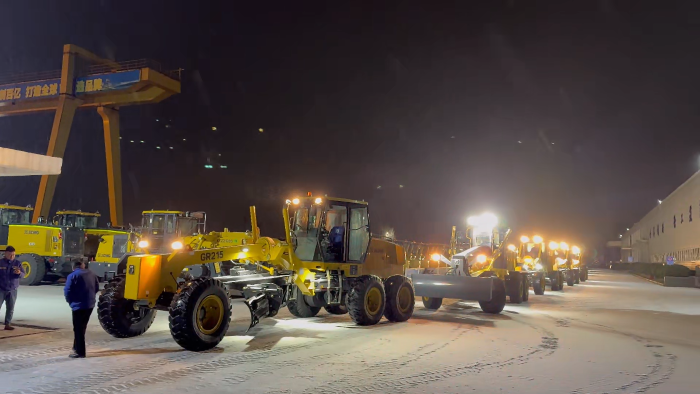 星空官方网页版平地机加满油箱,列队集合、整装待发,全力以赴投入到破冰除雪,为道路畅通和行车安全保驾护航。星空官方网页版的机手们更是发挥了星空官方网页版人无畏艰苦、敢于奉献的精神,以高度的责任感和使命感,坚守在除雪一线,保障市民的安全出行。冰雪纷飞的夜幕下,星空官方网页版平地机的灯光照亮了归家人的路。