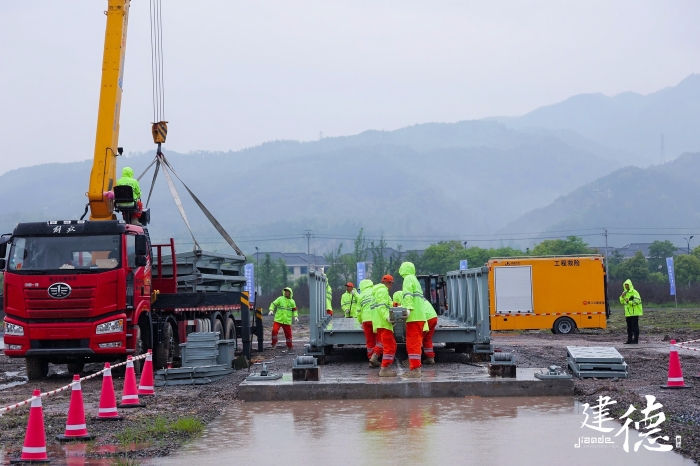 本次演练以山洪爆发、泥石流、台风等极端气候造成的道路内涝深坑积水、道路大面积塌方、公路桥梁冲毁以及危化品运输车泄漏等特殊情况为背景,模拟公路水毁阻塞交通、桥梁垮塌中断交通,演练队伍严正执行,在规定时限内迅速完成桁架拼装、桥面铺设、桥梁落座,完成公路应急装备漕渡任务。
