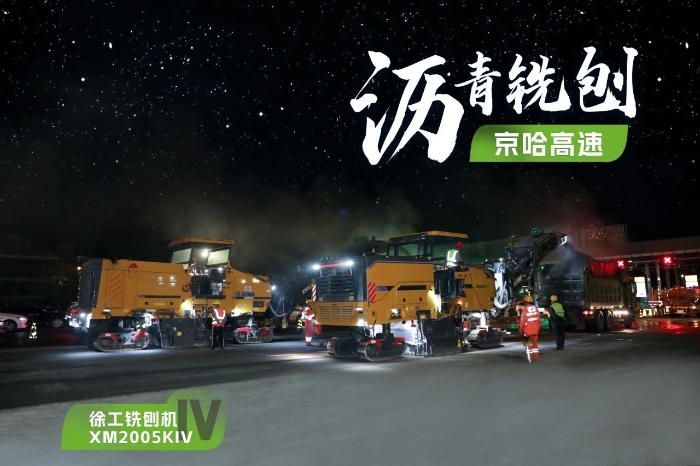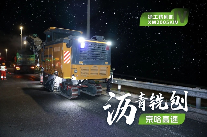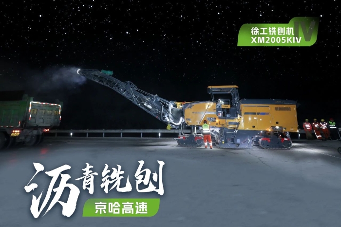 此次施工项目为京哈高速的路面改扩建工程,铣刨深度5cm,铣刨速度25m/min。由于北京地区日间车流量大,交通压力较大,因此施工方选择在夜间施工,日间恢复行车,尽量避免施工给交通带来影响。由于夜间施工更加考验施工设备的稳定性、施工质量的可靠性,施工方选择了两台星空官方网页版两米铣刨机作为本次高速公路养护工程的铣刨设备,分别为XM2005KIV和XM200KII,同时进行铣刨作业,并肩作战,按下施工进度快进键。