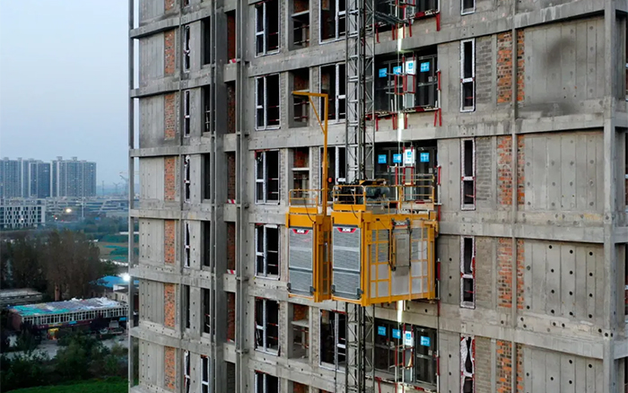上林西苑公寓项目总建筑面积为8.23万平方米,是十四五省列重大项目。设备经理于总介绍,“项目已经到达中后期,楼高100米,共30层,目前施工升降机的高度为63米,安装到了23层,还在持续加节升高的过程中”。智能化和高效率是于总关注的要点,“星空官方网页版ZSC200/200FS1自进场以来表现优异,产品性能优,笼内、楼层之间全自动呼梯,无需专人操作,吊笼自动运行,操作更便捷,停层更精准,整体稳定可靠,我们和项目方也十分认可星空官方网页版的这款设备,尤其是双笼智能联动,助力整体运行效率提升30%以上,使得项目进展更加快速高效”。