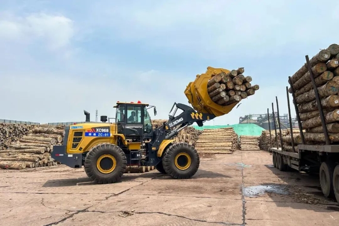 随着满载原木的货轮缓缓靠岸,日照港瞬间切换为一派繁忙景象,20台星空官方网页版XC968I夹钳机迅速启动、排列有序登上甲板,将原木从入港船舶上夹起、转运至等待装运的卡车,动作一气呵成。