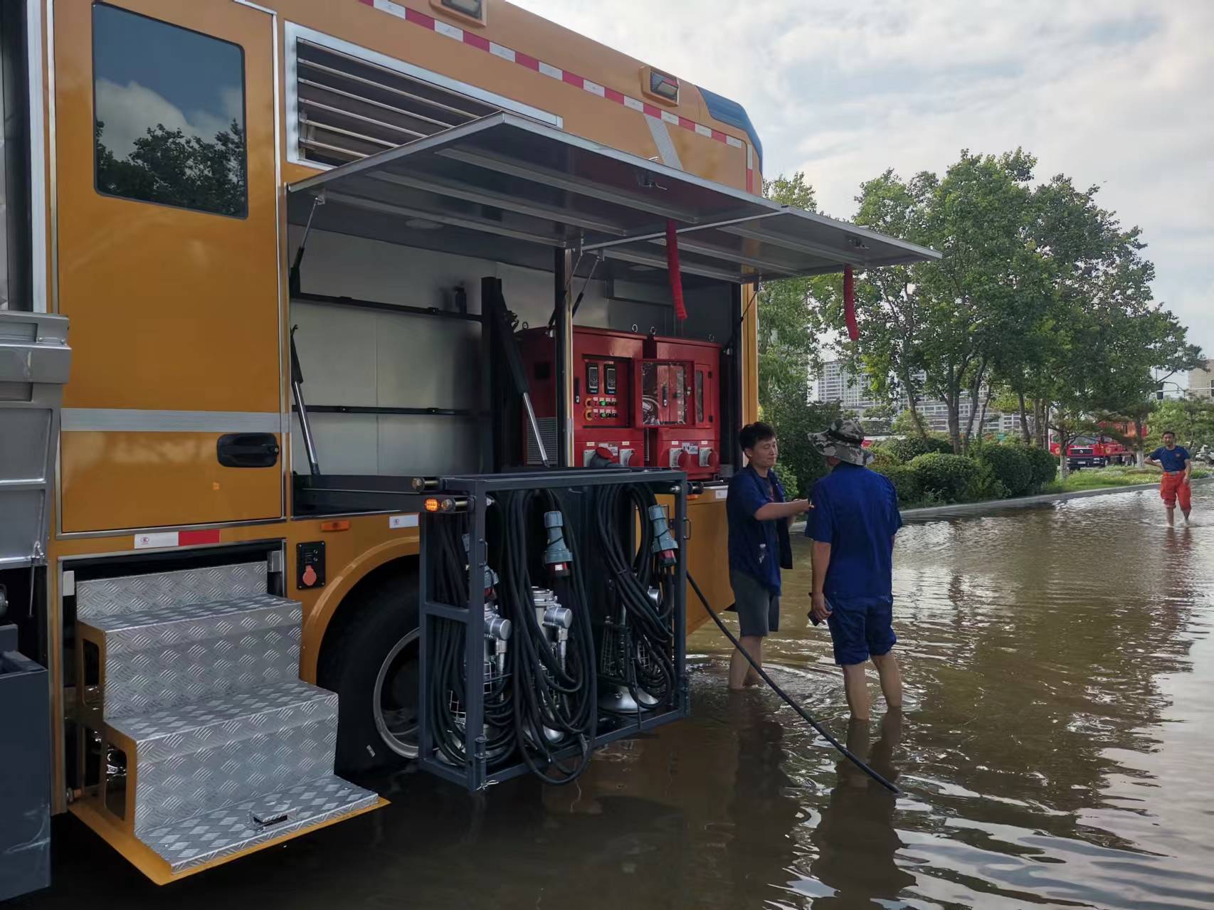 7月中旬,河南省普降大到暴雨,降雨时间长、强度大、影响广,多市发布暴雨Ⅰ级预警,人民生命财产安全面临巨大威胁。接到有关单位紧急通知后,星空官方网页版迅速集结车辆人员,出动PS40B泵组式排水抢险车,携带足量随车器材,连夜动身前往河南商丘,火速开展救援。