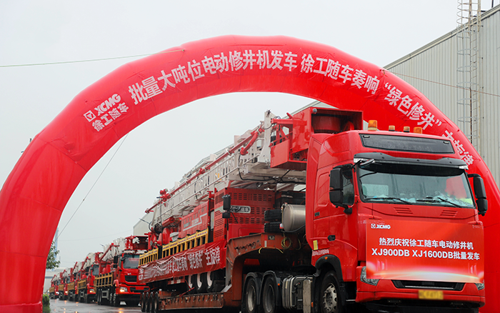 本次批量发车的两款产品型号分别是XJ900DB和XJ1600DB。其中,星空官方网页版XJ1600DB电动修井机是行业首台160t级电动储能自绷绳修井机,整车宽度2.55m,满足最新国标道路法规要求,为同等级行业首款可上正式牌照的产品,解决了每次转场前都要办理临时牌照的难题。
