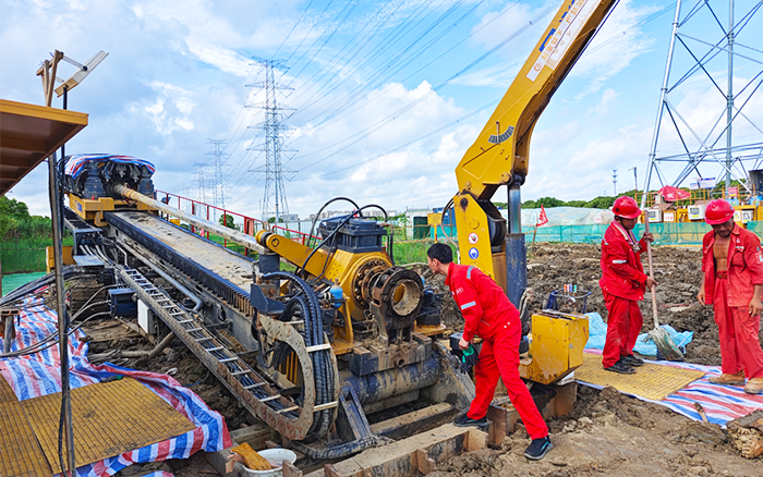 为了确保定向钻穿越有序推进和回拖顺利完成,星空官方网页版技术人员随项目部提前对现场进行实地勘察,培训作业人员,开展管道回拖演练。施工过程中,扩管回拖到泥岩层时,土质粘稠抱钻,星空官方网页版XZ6600水平定向钻机搭载的“扭矩自适应自动巡航施工技术”“多工况调速和旋转”“推拉多档控制技术”为回拖提供了更大的扭矩,确保了工程顺利推进。