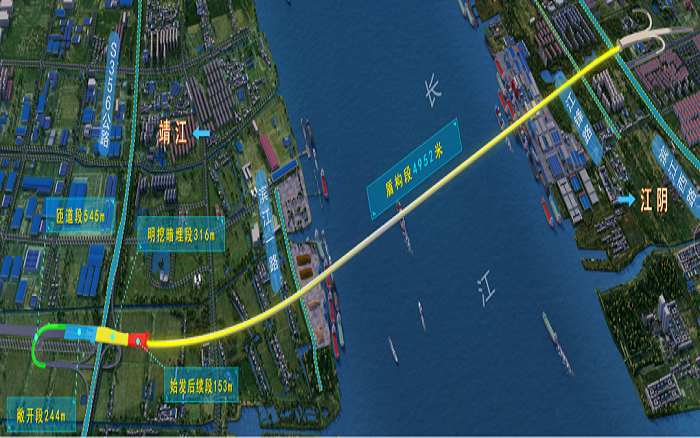 江阴靖江长江隧道南接线工程全长11.4km,设主线桥2座,其中特大桥1座、大桥1座。项目建成后,将对缓解江阴大桥交通压力、推动长三角一体化、完善高速公路网络、促进跨江融合发展等具有重大意义。