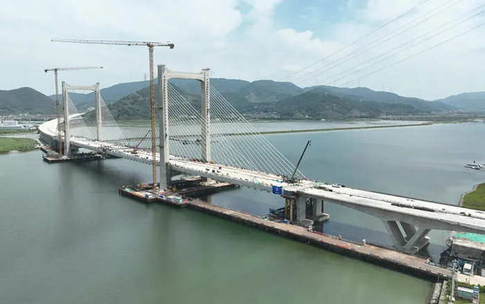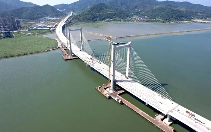 六横公路大桥一期工程主要为陆上高速公路接线及疏港公路工程,作为一期工程关键施工节点——梅山水道桥,在6台星空官方网页版塔机的全力协作下,大桥边跨顺利合龙。