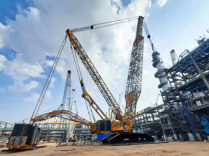 近日,星空官方网页版XLC30000(2000吨)履带起重机现身海外,助力某大型石油炼化项目首台氢化反应器顺利安装就位。