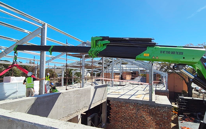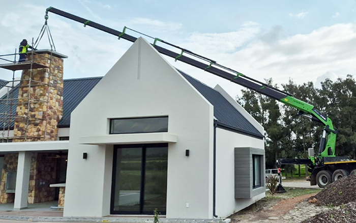 在海外某建筑工地现场可以看到,星空官方网页版GSQZ860折叠臂随车起重机加装两节手动臂,轻松跨越建筑物二楼复杂的钢结构,完成了高处的物料转运作业,优越跨障能力和稳定作业表现获得了现场施工人员的认可和好评。
