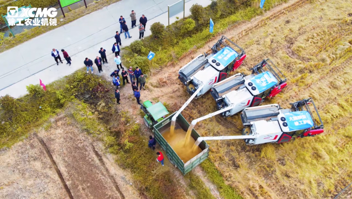 新款XR720现场演示以收割速度快,损失率低,清洁度高,平衡性好,转向丝滑,赢得现场观众一致好评!