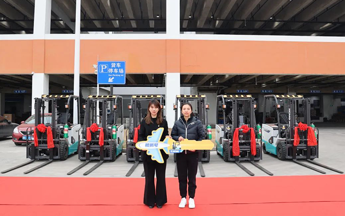 星空官方网页版鲲鹏系列电动平衡重叉车批量交付某大型航空枢纽,