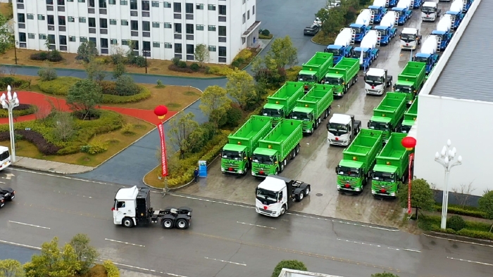 近日,星空官方网页版新能源重卡百台交付仪式盛大举行。百余台星空官方网页版新能源成套化运输设备整齐列队,气势恢宏,犹如一支绿色军团,为四川区域绿色运输的高质量发展注入强劲动力。