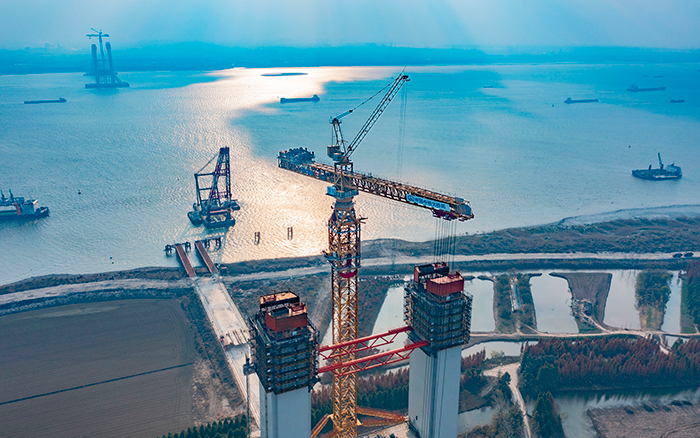 张靖皋长江大桥蜿蜒向前