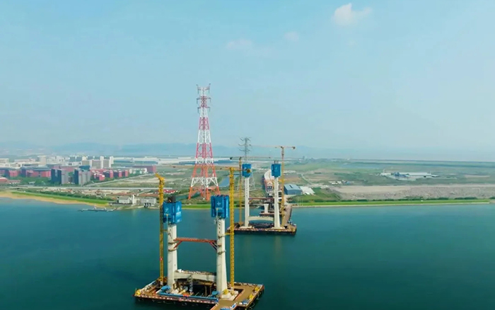 该项目建设规模大,结构类型多,科技含量高。全线海域桥梁长度约9公里,海上作业工程量大,项目施工区域内气象、水文、地质条件复杂,同时还面临航运繁忙,海上施工组织难度大等挑战。