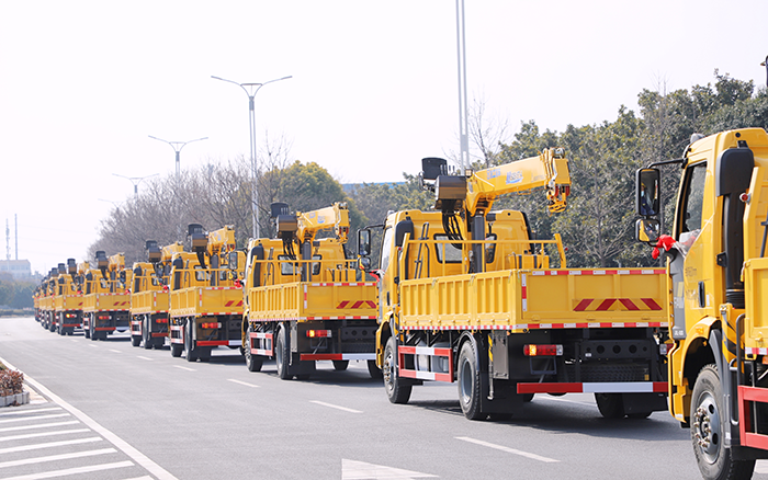 一辆辆随车起重机缓缓驶出工厂,它们将奔赴各个城市建设项目现场,成为城市建设的得力 “干将”。这批随车起重机的投入使用,将为城市建设带来显著的推动作用。在城市基础设施建设中,它们能够高效地搬运和安装大型构件,加快工程进度;在城市改造项目里,灵活的操作性能让其在狭窄空间内也能施展拳脚,助力城市面貌焕然一新。