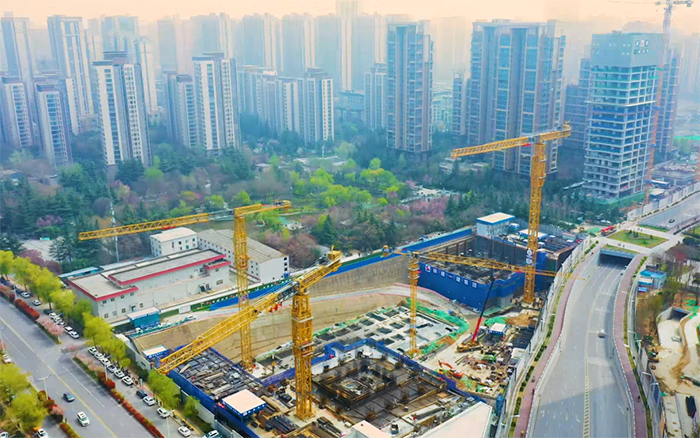 两台星空官方网页版超大吨位塔机XGT1350-64S是该项目的吊装主力军,主要负责钢结构及主体施工材料的吊装工作,与星空官方网页版XGT600-25S、XGT6015-8S1配合作业,为古城西安再添城市CBD。