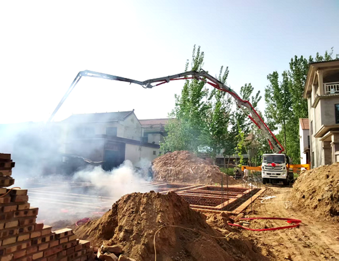 河南新农居工地上,星空官方网页版33米泵车搭载徐汽底盘,征服泥泞坡道,灵活游走窄巷、乡道,到达建筑房屋,长臂延展,将混凝土精准送达房屋地基。