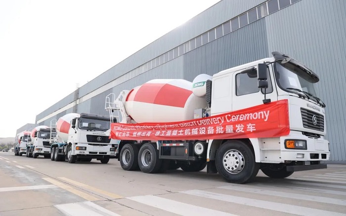 百余台定制版52/58/62米泵车、12方搅拌车,列队鸣笛,从徐州基地发往中东。产品采用耐高温液压系统与节油技术,适配中东极端环境,助建NEOM未来新城等超级工程。
