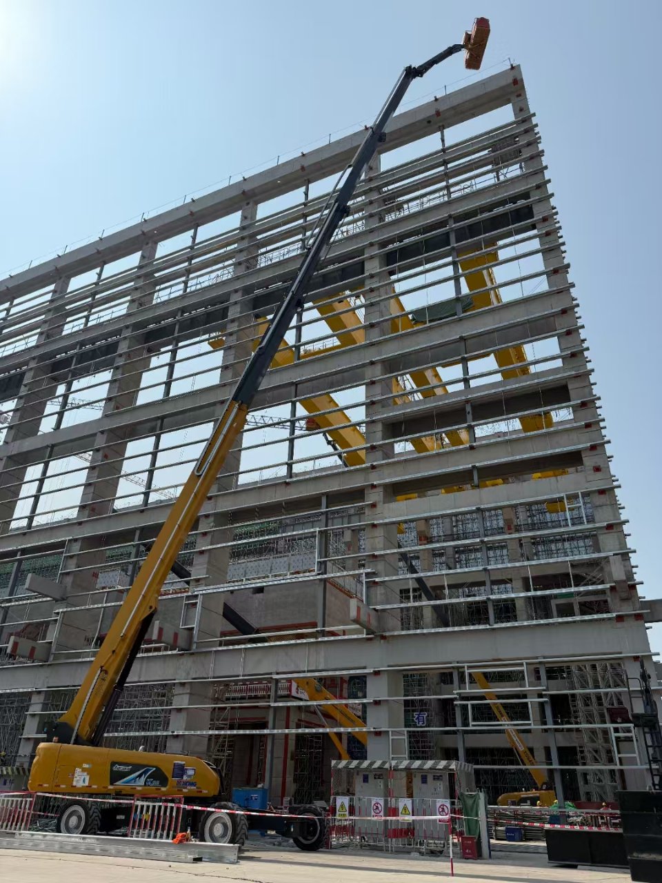 近日,在广东廉江核电项目中,星空官方网页版XGS58直臂式高空作业平台凭借卓越性能,为项目厂房外立面钢结构安装及室内粉刷提供了高效安全的解决方案。