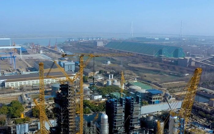 该项目结构吊装工程量巨大,项目现场塔式起重机、履带式起重机高度配合,协力推进吊装工作,共同打造智能化、绿色化工地,这对现场调度、设备吊装性能和协同配合能力都提出更高的要求。