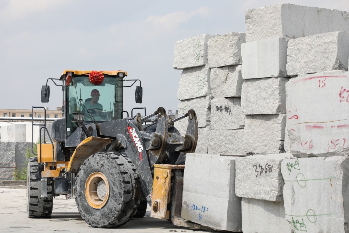 高档花岗岩石材,以其优美的外观、坚硬的质地,一直是公共设施外立面装饰的首选。客户用的这台星空官方网页版LW500KV(GIV)-T18石材叉装机已在石材加工厂使用两年,“相比过去用的车,操控轻松方便,视野很开阔,在复杂工作环境下也非常稳定可靠,干活效率高。”驾驶员对星空官方网页版石材叉装机赞赏有加。