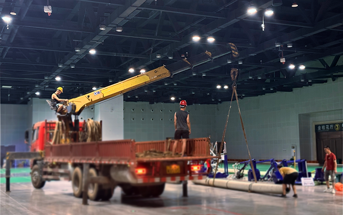 在广西国际会展中心体育场馆塑胶铺设施工现场,星空官方网页版随车起重机以硬核实力成为工程推进的 “主力军”,赢得客户连连称赞。