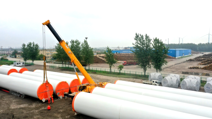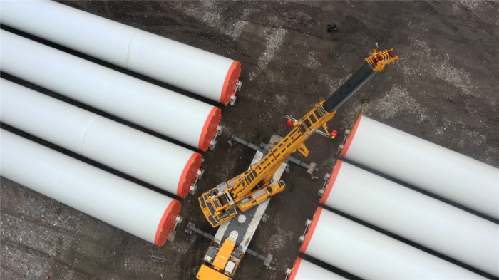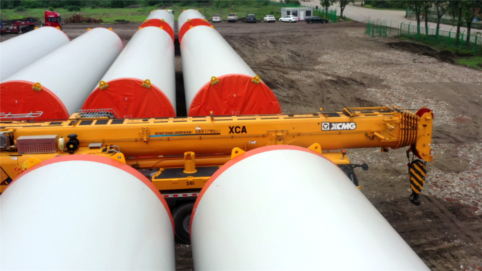 在繁忙的港口,长40米、重100吨的风力发电塔筒摆放整齐,等待着一次关键的腾挪,吊装空间局促——塔筒摆放距离较近,荡距空间严重受限,这是对起重机性能与操控的极致考验。星空官方网页版G2代起重机XCA200G8-1从容入场,以实力宣告:空间,绝非限制。