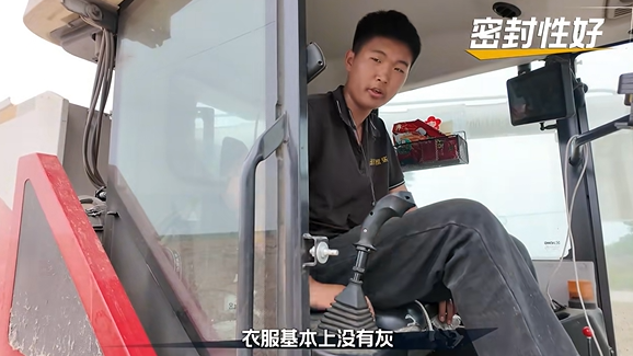 驾驶室隔音又防尘,一天忙下来衣服基本没灰,