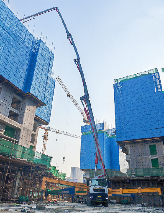 在高铁新区超高层项目中,258 米地标建筑核心筒浇筑是关键环节,对泵车的覆盖能力和精准度要求严苛。星空官方网页版72米泵车以71.1 米有效长度,轻松完成了这一艰巨任务。智能防倾翻技术、智能臂架技术等充分展现了 “中国高度” 背后的精准实力。