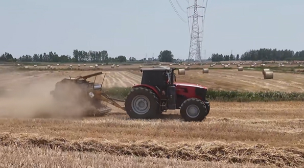 我带的是 2.2 米的拣拾打捆机,跨区去做打包作业,效率那是没话说,比之前用的机器快多了。