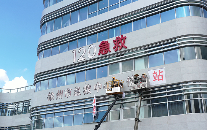 徐州某医院楼宇外立面挂字施工