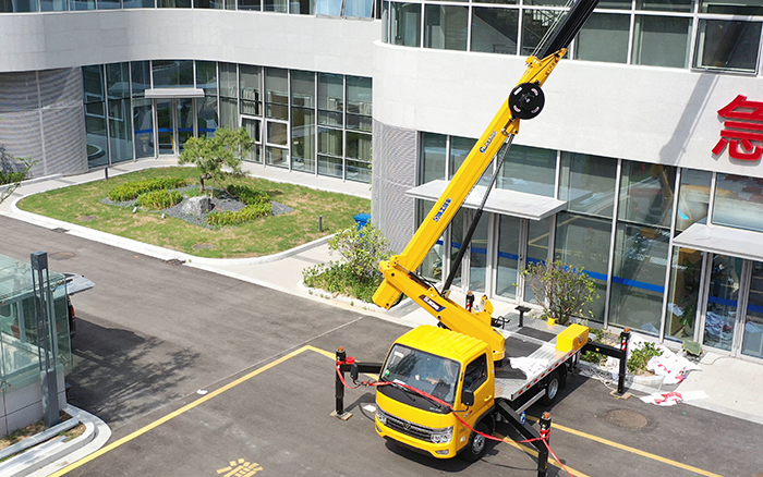 施工时,360° 全回转工作平台配合五节臂同步伸缩,工人在地面通过遥控器精准调整字体安装位置,无级调速系统让操作稳如 “绣花”。挂字时要反复对齐,这台车的无级调速控制系统受到施工队的赞许,“动臂伸缩、回转都很平稳,精度能控制在厘米级,高温天效率反而比平时大大提高!”
