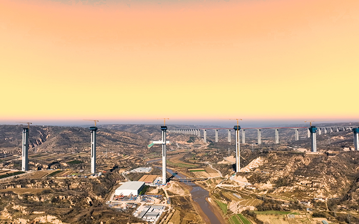 马莲河特大桥是G309线西合公路关键控制性工程,总长2208米,主桥主墩高178m,既是国内黄土地区跨度最大、联跨最多的矮塔斜拉桥,也是国内外最高的多矮塔PC梁斜拉桥。