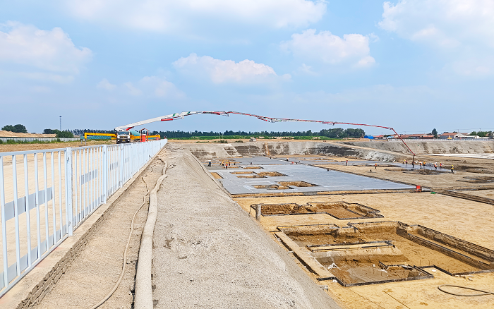 近日,在山东陵城某物流园建设现场,星空官方网页版72米泵车凭借卓越性能成为施工主力。
