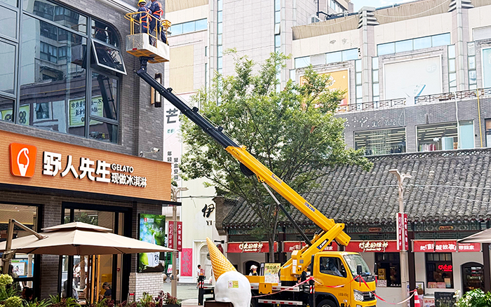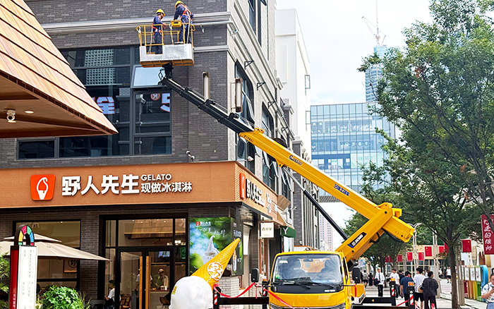 面对 40℃的高温,无线遥控功能成了工人的 "救星"。操作手在商铺阴凉处手持遥控器,就能精准控制 28 米高的作业平台。四节臂同步伸缩配合 360° 全回转平台,让外立面管线检修一气呵成。"无级调速太好用了,精度能到厘米级,让高空作业随心所欲。" 施工师傅对设备稳定性赞不绝口。