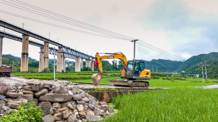 只见星空官方网页版XE75GA犹如灵活的“钢铁穿山甲”,在泥水中沉稳作业。 坚硬的岩石、盘根错节的树根,在它强劲的液压系统和精准的斗杆操控下被逐一“啃”碎清除,为道路拓宽扫清障碍。