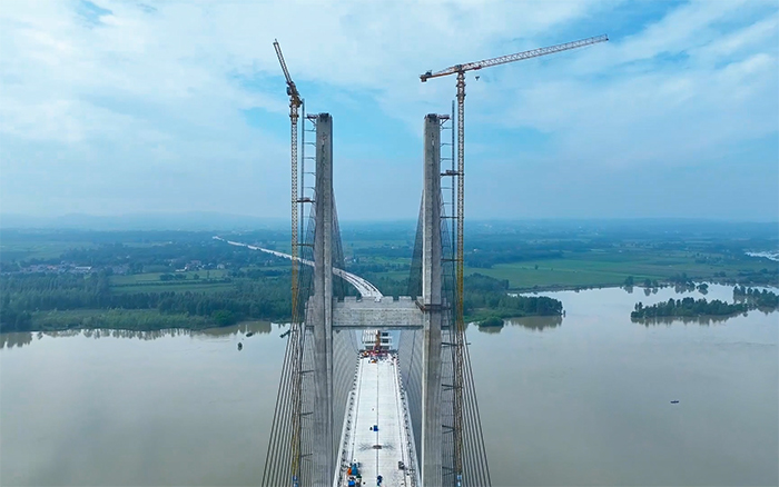 隆中大桥是207国道襄阳段改建项目的核心控制性工程,大桥全长4454米,两个主跨均为330米。