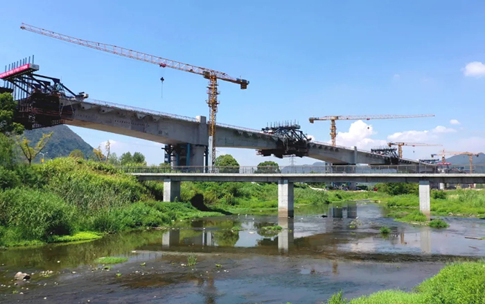 集安全、可靠、高效于一身的星空官方网页版XGT6515B-10S、XGT7022-12S等产品沿桥而立,主要负责项目中墩身钢筋吊装、模板安拆等工作。