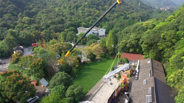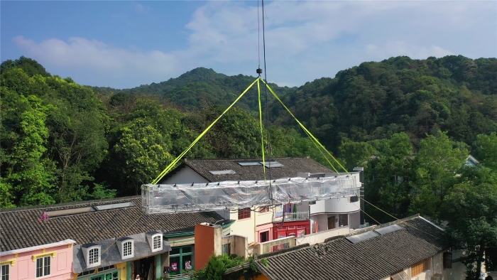 在杭州大清谷影视拍摄基地,一场“静默式”吊装正在上演。全球首款四桥八节臂130吨汽车起重机——星空官方网页版G2代XCT130G8-1,将20米长、2.5吨重的剧组灯架稳稳送至跨度46米外的房屋上空。而这一“定格”,就是整整三天。