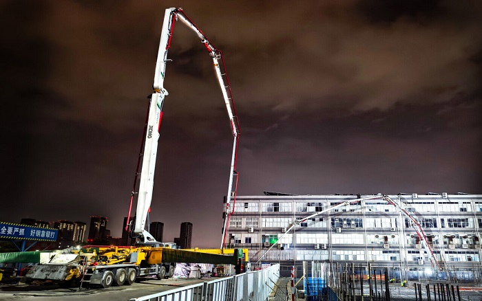 HB62V泵车凭借智能臂架技术实现毫米级精准布料,单侧支撑模式适配复杂场地。