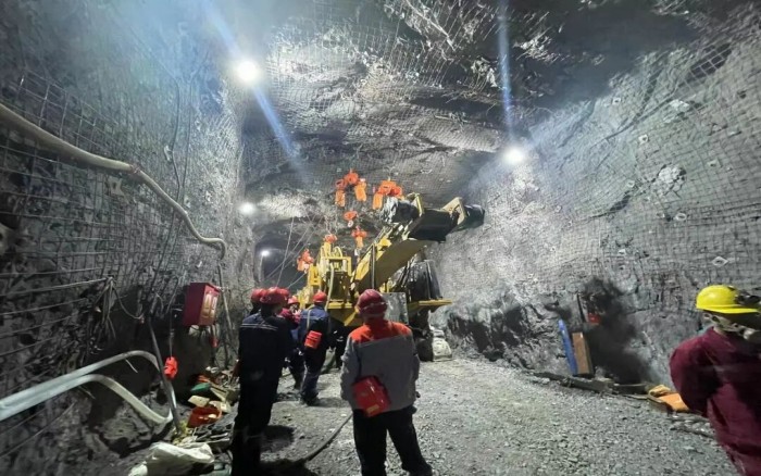 星空官方网页版XTR7/360掘进机在矿下展开了一场硬碰硬的较量,平均两小时进尺1m的施工效率,引来现场采矿工作人员的围观。