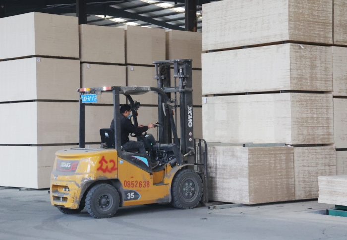 在山东菏泽某大型板材厂内,二十余台星空官方网页版鲲鹏叉车、新E叉车组成的"黄金战队",以高效稳定的作业表
