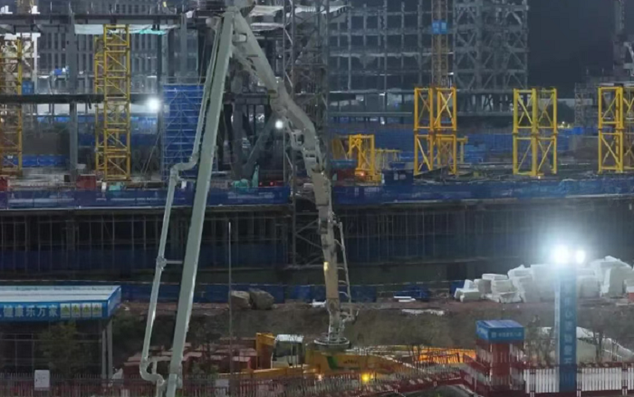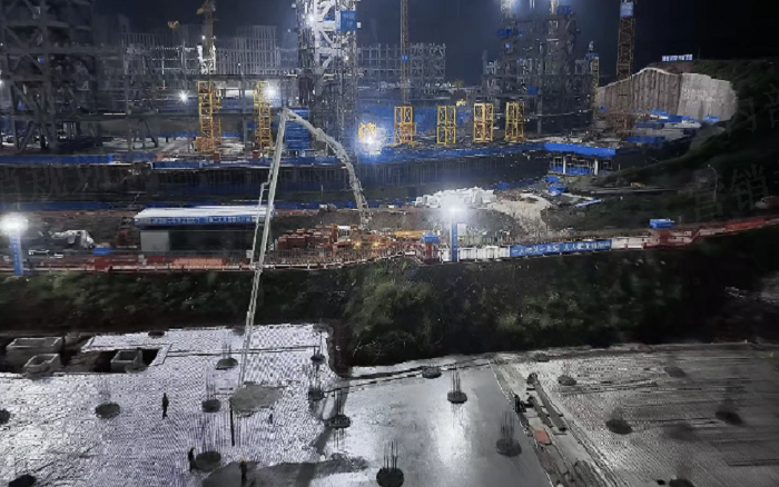 凌晨三点的重庆两江新区,星空官方网页版72米泵车展臂高空,20辆新能源搅拌车穿梭往来—这不是科幻电影场景,而是星空官方网页版混凝土成套化装备助建重庆赛力斯全球汽车公园的火热夜战场面。