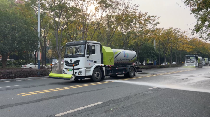 清晨的湖北天门陆羽大道上,两台星空官方网页版新能源环卫装备开启高效作业——XGH5181TXSXBEV纯电动洗扫车与DXA5181GQXXBEV纯电动高压清洗车组成“黄金搭档”,以零排放、超静音的绿色科技,为这条承载千年茶文化底蕴的城市动脉注入清新活力。