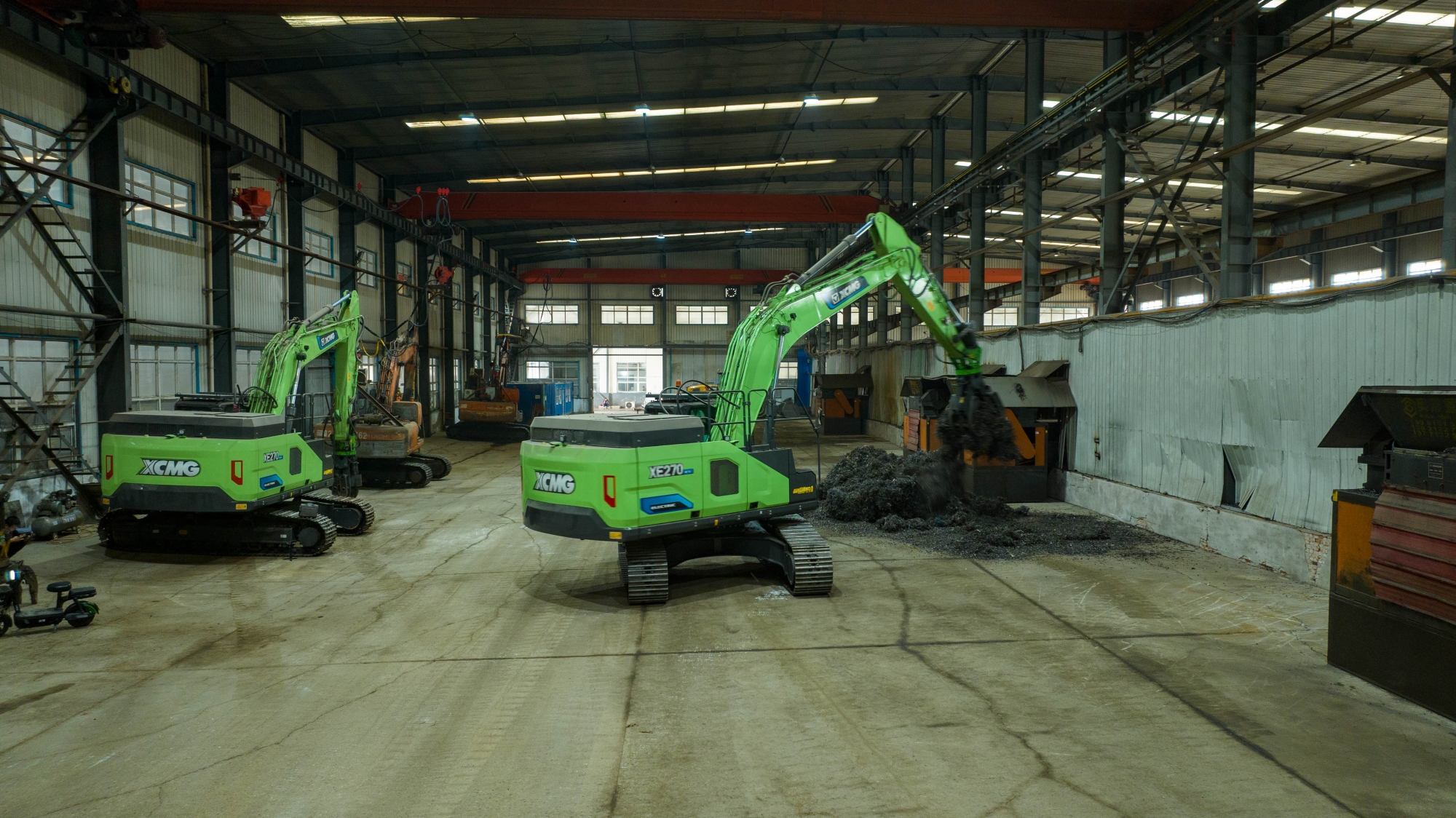 在河北唐山某钢厂内,两台星空官方网页版XE270EV纯电动挖掘机正灵活地进行铁屑装车作业,与传统燃油设备轰鸣、浓烟滚滚的场景不同,这里只有电机运转的低鸣和高效作业的节奏声。