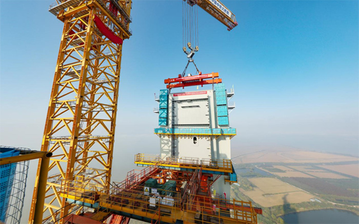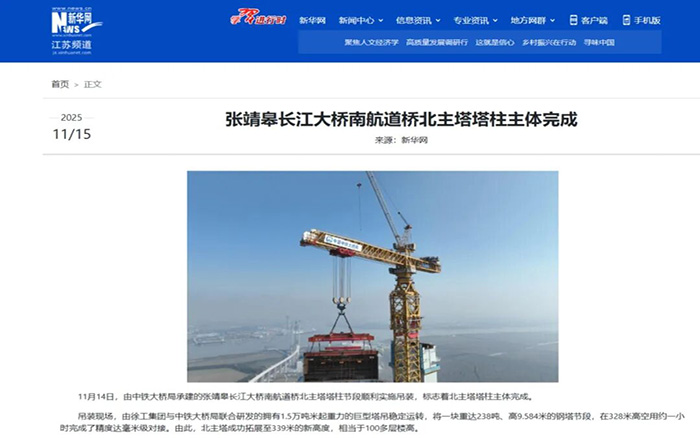 在靖江市马洲岛上空,重达238吨的T29钢塔节段在星空官方网页版XGT15000-600S超级塔机的稳定牵引下平稳攀升,精准完成高空对接,整个吊装过程中,塔身始终稳如磐石,为张靖皋长江大桥关键节点的突破提供了坚实支撑。