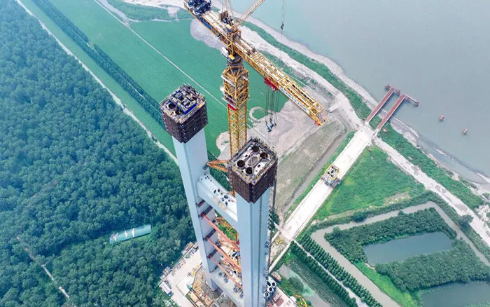 南航道桥北主塔塔柱主体工程全部完工
